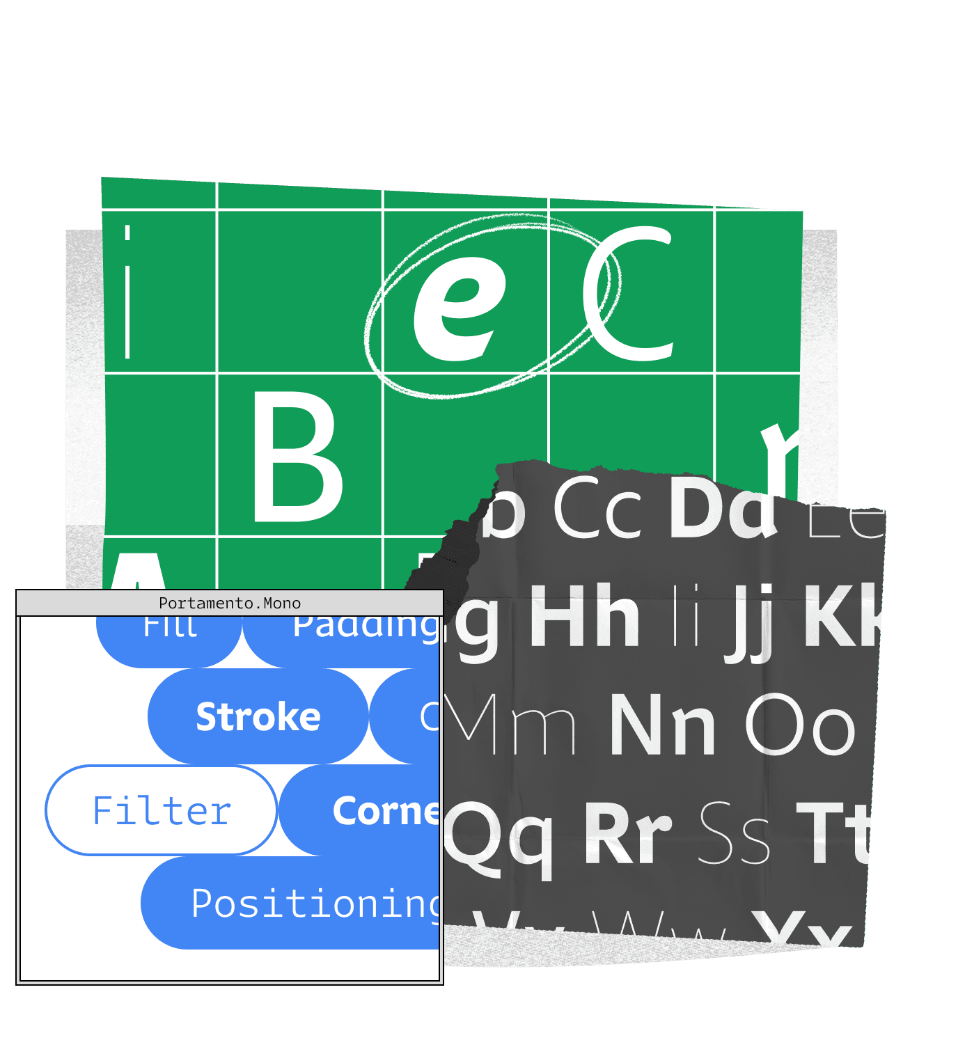 FIG. 7 — Portamento’s Mono inherits all of its shapes and harmony from the Proportional family within the width constraints of a traditional monospace.